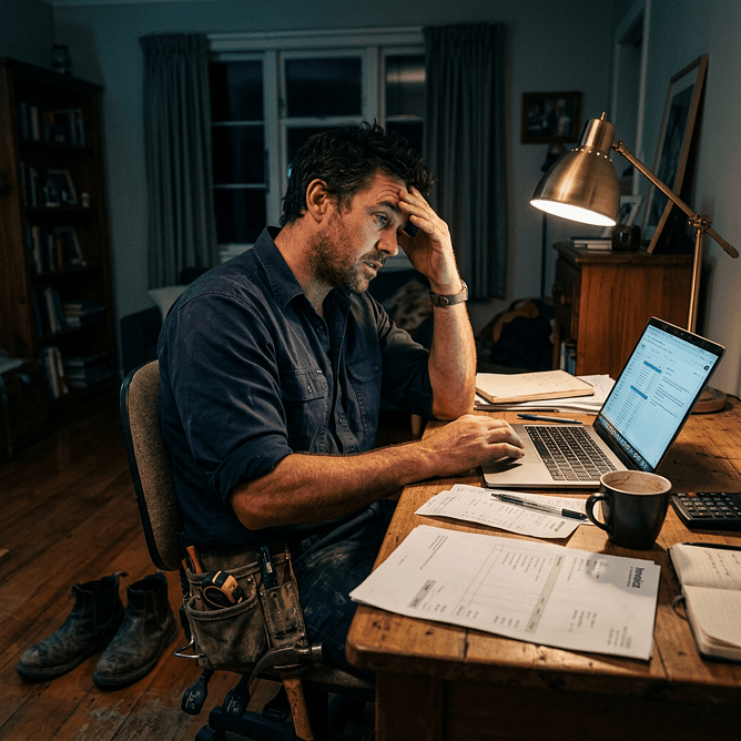 Most trades business owners we meet are running on fumes. They're on the tools all day, then home for dinner, then back at the laptop until 10pm trying to catch up on quotes, chase a late payment, or work out why the invoice didn't send.